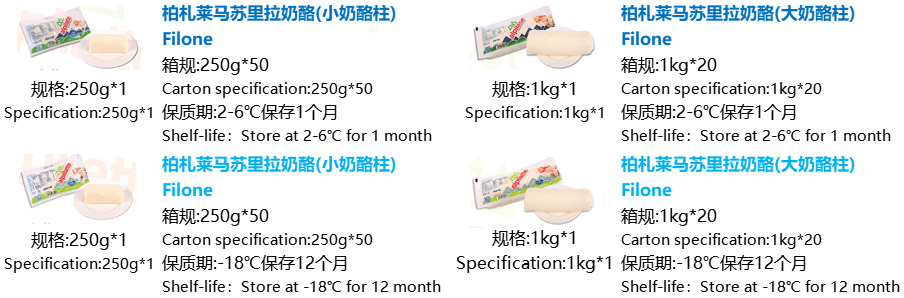 This kind of cheese known as Filone in Italy, is a natural cheese made from milk that is fermented directly. Its main ingredients are pasteurized milk and salt, and it is made without any artificial colors, preservatives or thickeners, ensuring its natural and pure taste and nutritional value. It is rich in protein, calcium, collagen and other nutrients, has a high calorie content, making it suitable for consumption as a high-protein food. It is often used in pizza, baked rice dishes and other baked foods to provide a good stretching effect and rich texture.